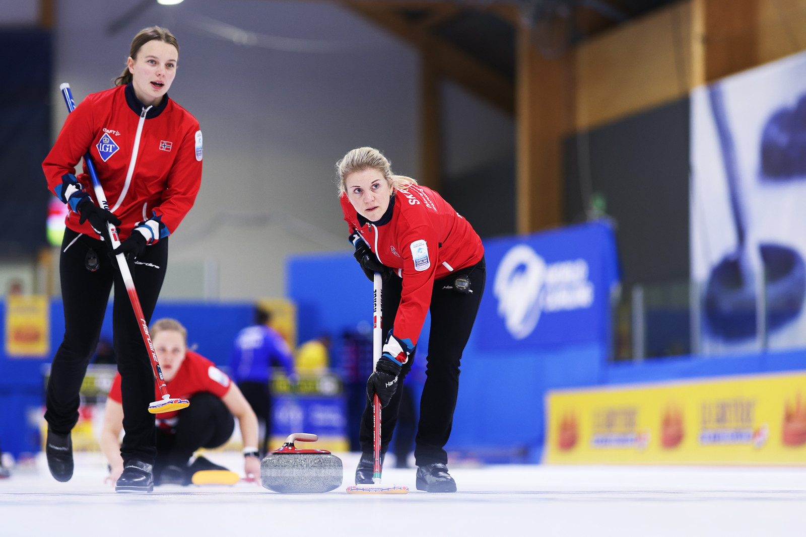 Du kan følge laget på livescores.worldcurling.org