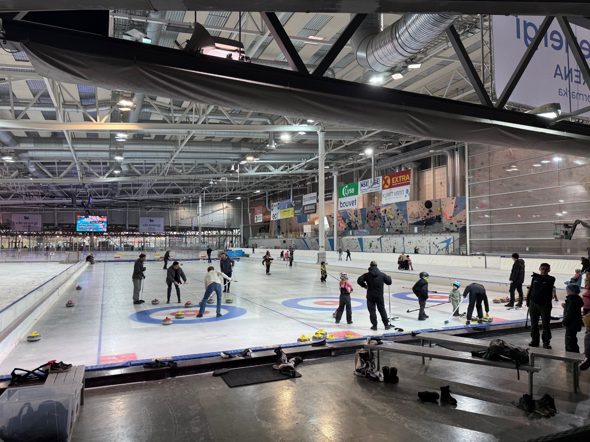 På søndag holdt de aller fleste hallene våre åpen dag for publikum mellom klokken 12 og 15. Det gikk ikke stille for seg. Som vi har sett de siste OL, så er interessen stor for å se curling på TV, det viser seg at mange også er nysgjerrige nok til å ta turen til curlinghallen når sjansen byr seg.