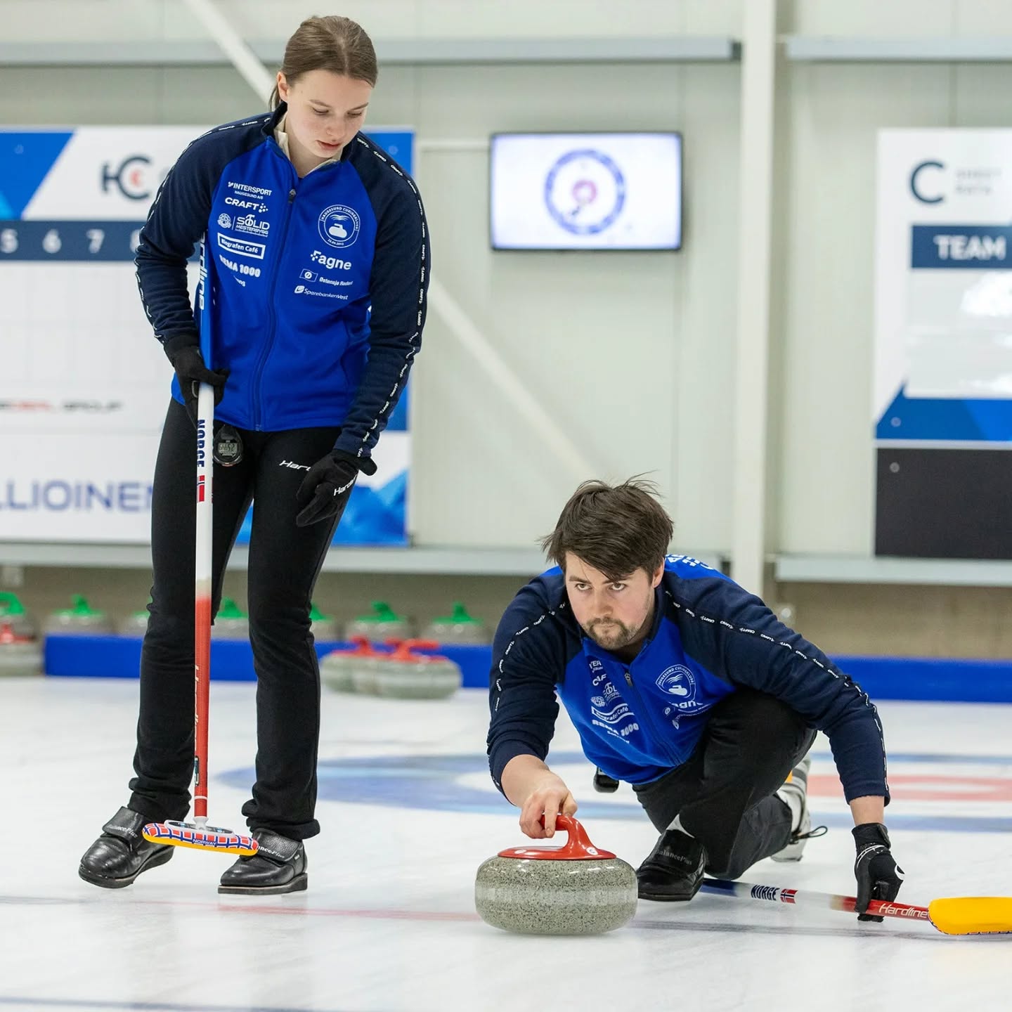 Eilin og Mathias på isen i Hyvinkäa, Finland. (Foto: Hyvinkäa Curling)