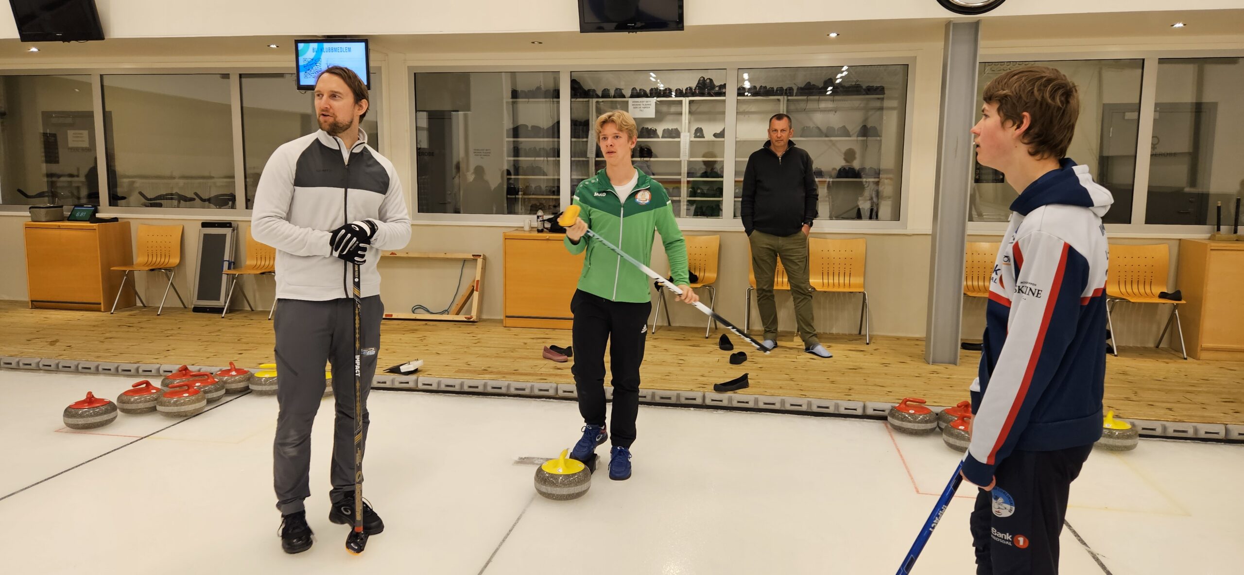 På lørdagen hadde vi storfint besøk av Gaute Nepstad og Bendik Ramsfjell som holdt en veldig lærerik og engasjerende kosteøkt for alle deltakerne. De viste og veiledet i riktig teknikk, snakket om det å koste med og mot curlen. I tillegg fikk ungdommene testet kosting med rock hawk tidtakersystem. Denne økten ble trukket frem som det de aller fleste satte mest pris på.